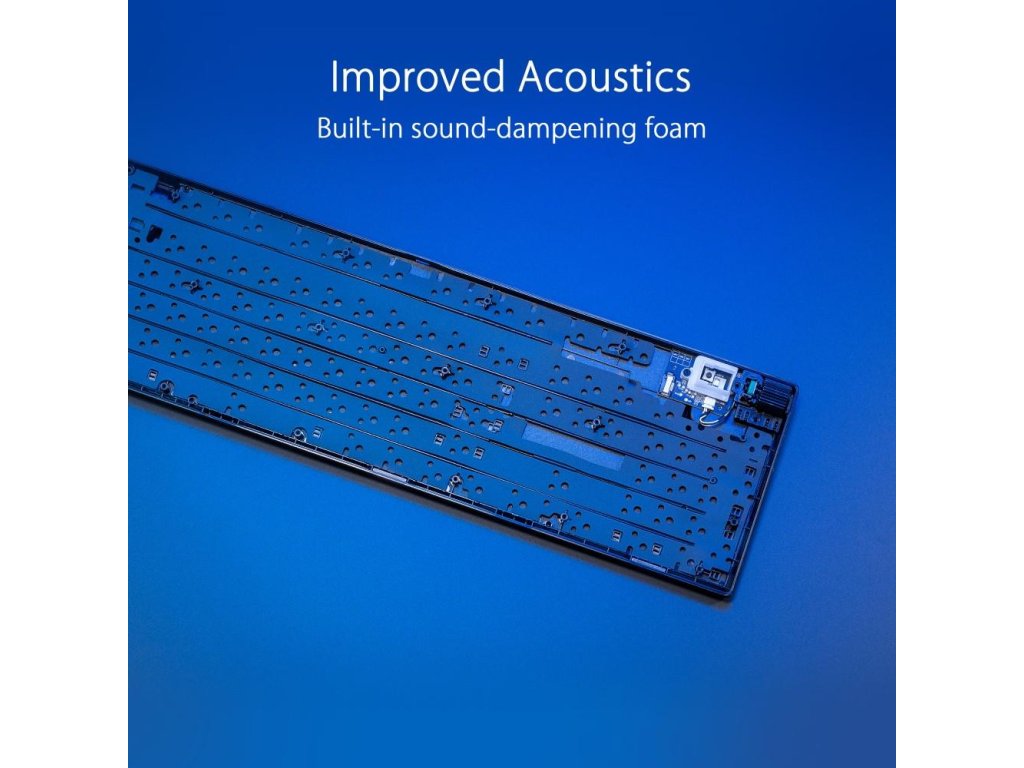 - Mechanické spínače ROG NX Red: Předem namazané lineární spínače NX Snow a klikové spínače ROG NX Storm se stěnovým designem stopky pro zvýšení stability úhozu a vyladěné pro skvělou akustiku