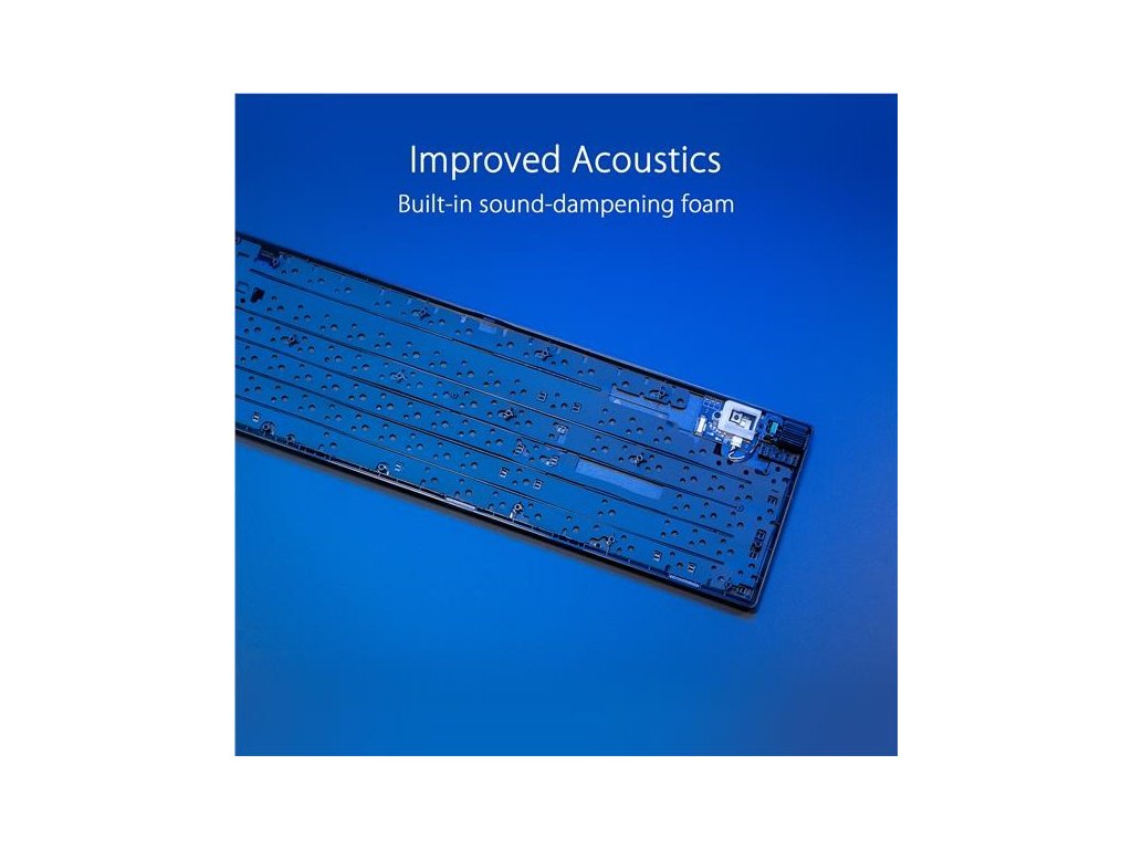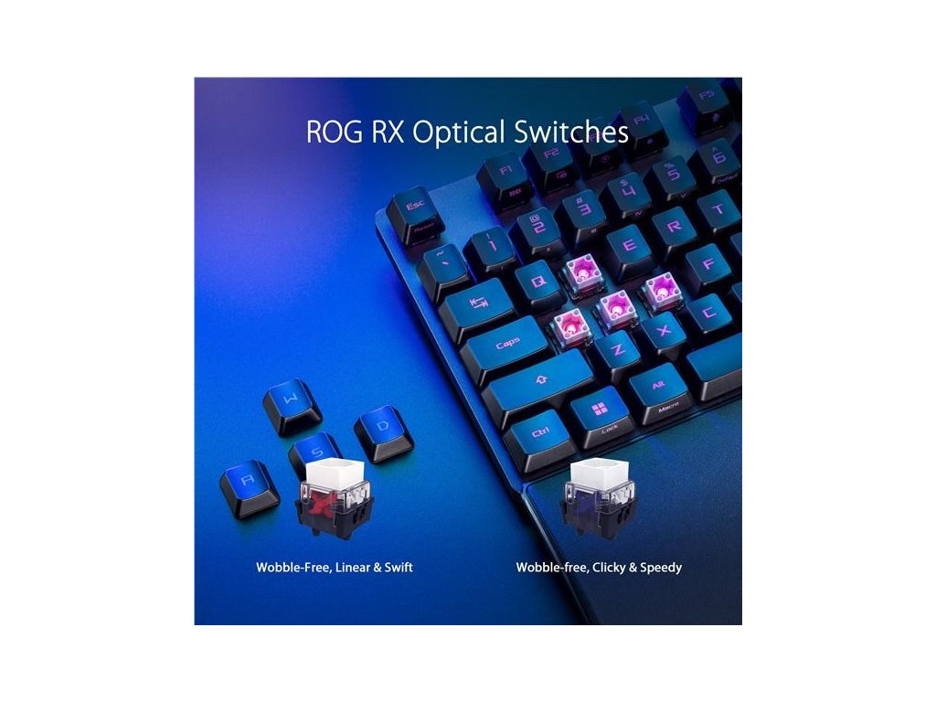 - Mechanické spínače ROG NX Snow & Storm: Předem namazané lineární spínače NX Snow a klikové spínače ROG NX Storm se stěnovým designem stopky pro zvýšení stability úhozu a vyladěné pro skvělou akustiku