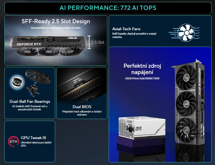- Fifth-Gen Tensor Cores (Maximální výkon AI s FP4 a DLSS 4)