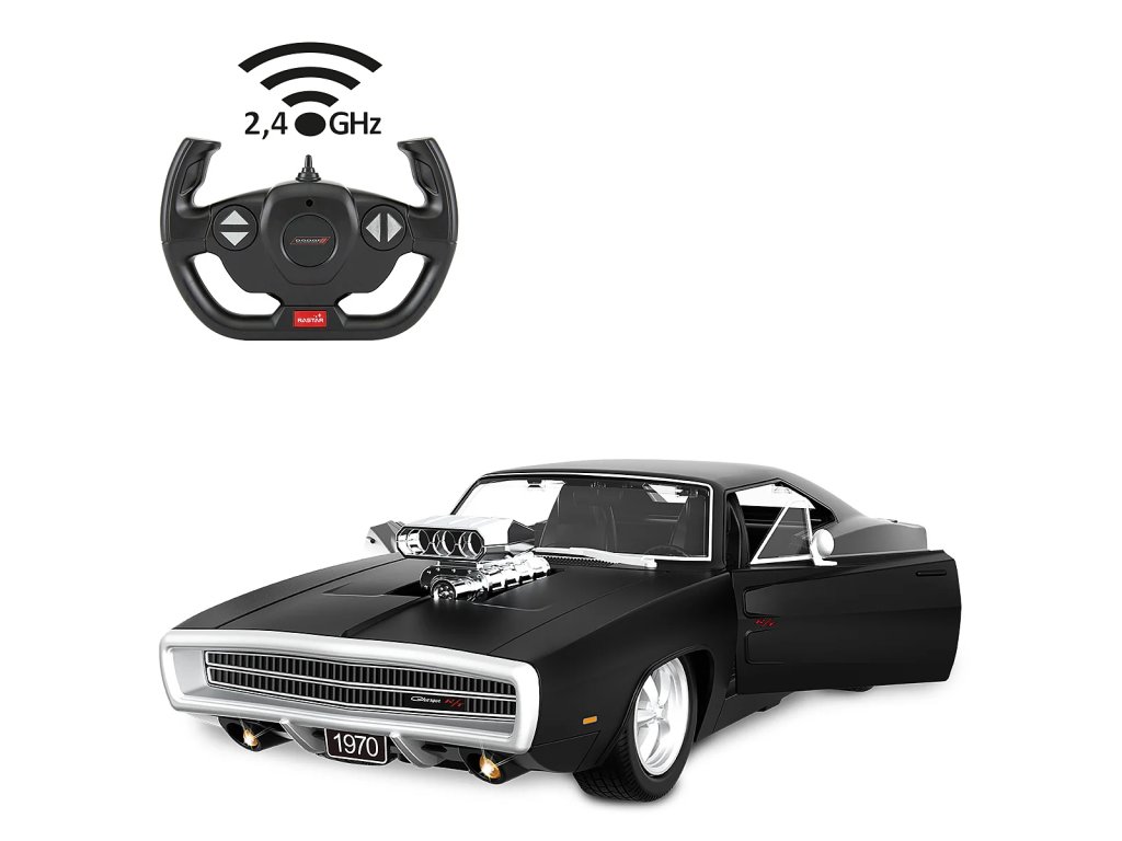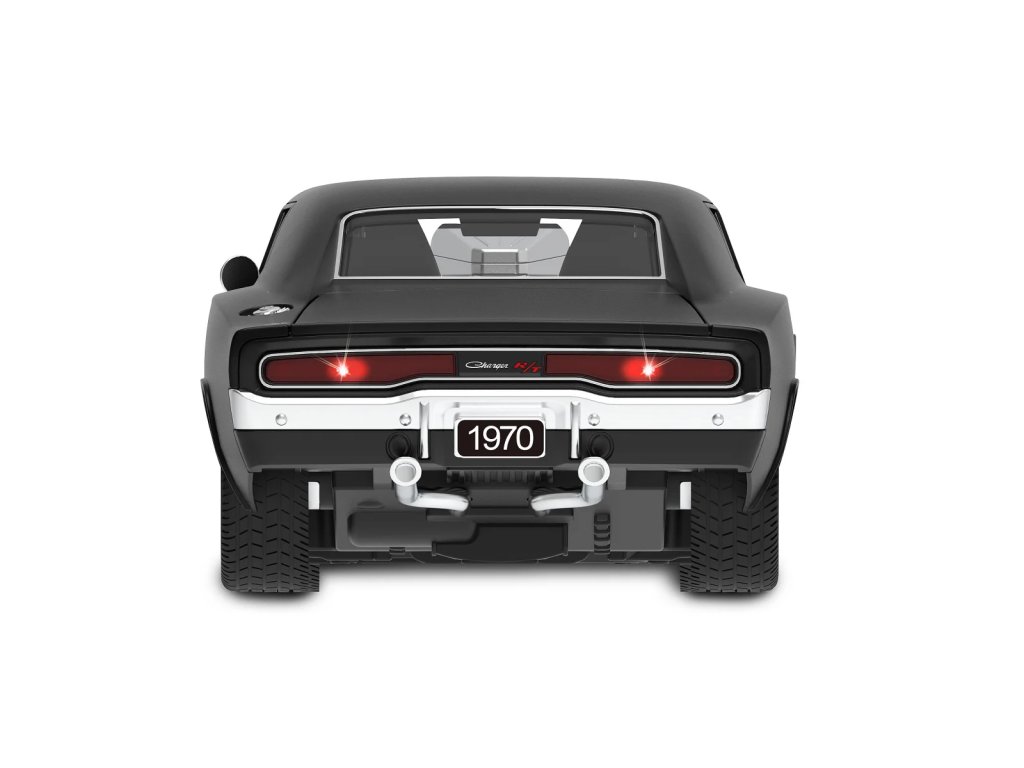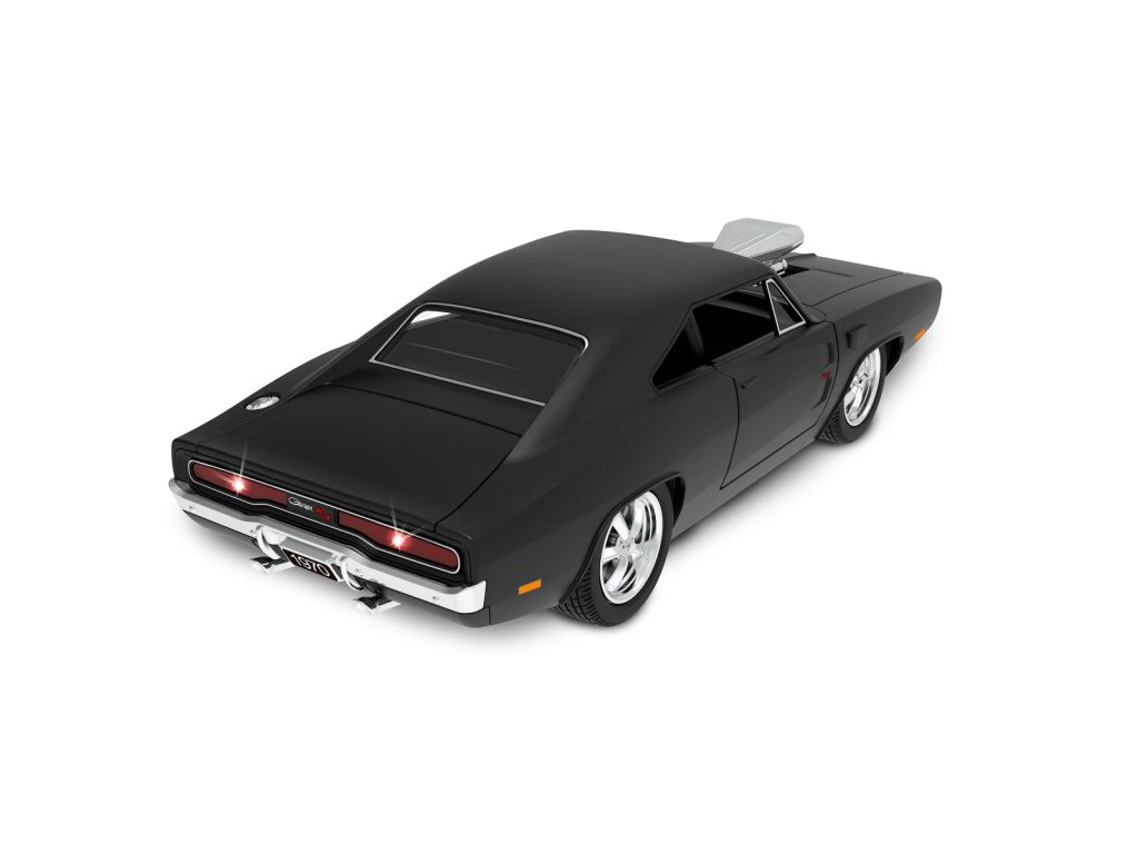 Dodge Charger z let 1966 až 1978 byl sportovní kupé americké střední třídy. Speciální modelový rok 1970 se od svých předchůdců liší v mnoha drobných detailech. Celkem bylo vyrobeno necelých 50 000 kusů této modelové řady, z toho asi 10 000 v provedení R/T. Sen o tom, řídit takové auto, se nyní může splnit. S tímto oficiálně licencovaným luxusním modelem auta v měřítku 1:16 od JAMARA můžete mít pocit, že vlastníte takové muscle car ve svém obývacím pokoji. Model zaujme LED světly, věrně zpracovaným interiérem a originálními detaily na podvozku a karoserii. Víko zavazadlového prostoru a kapotu lze otevírat ručně, stejně jako dveře, což umožňuje nahlédnout do interiéru Chargeru. S ergonomickým dálkovým ovládáním 2,4 GHz držíte ovládací centrum ve své ruce, stejně jako v opravdovém závodním autě, a dosáhnete rychlosti až 11 km/h. Vyrazte tedy na městské okruhy na parketách v dětském pokoji a nic vám nebude bránit v zábavě.