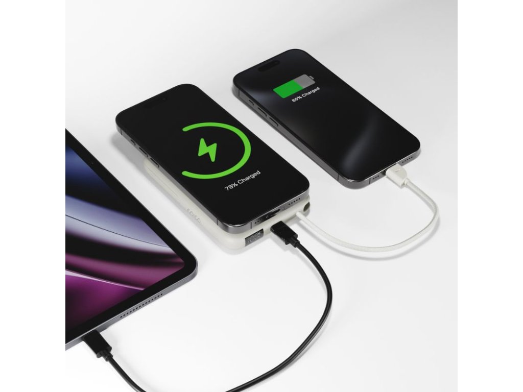Epico UltraPack 10000mAh Mag+ nabízí bezdrátové nabíjení s přesným magnetickým uchycením pro zařízení s podporou MagSafe. Telefon pevně drží na místě a nabíjí se výkonem až 15 W (7,5 W u iPhone). Vestavěný stojánek poskytne pohodlí při sledování videí nebo používání zařízení během nabíjení. S kapacitou 10 000 mAh budete mít dostatek energie na celý den, ať už nabíjíte telefon, tablet nebo jiné zařízení. Díky více výstupům můžete současně nabíjet až tři zařízení najednou – skrze integrovaný USB-C kabel (22,5 W), USB-C port (22,5 W) a bezdrátový výstup (až 15 W). Tato powerbanka je vybavena opleteným USB-C kabelem, který slouží k oboustrannému nabíjení a také jako odolné poutko. Vestavěný displej vám poskytne perfektní přehled o zbývající kapacitě na první pohled. Lehký a kompaktní design navíc umožňuje snadné přenášení, takže ji můžete vzít kamkoliv s sebou.
