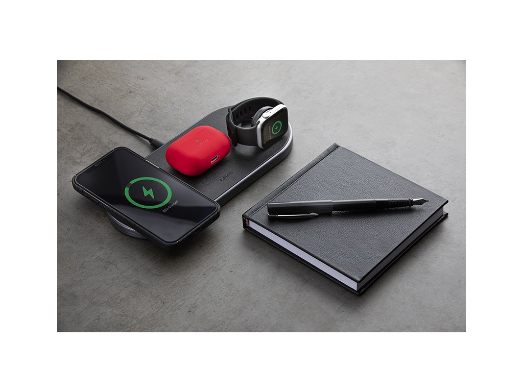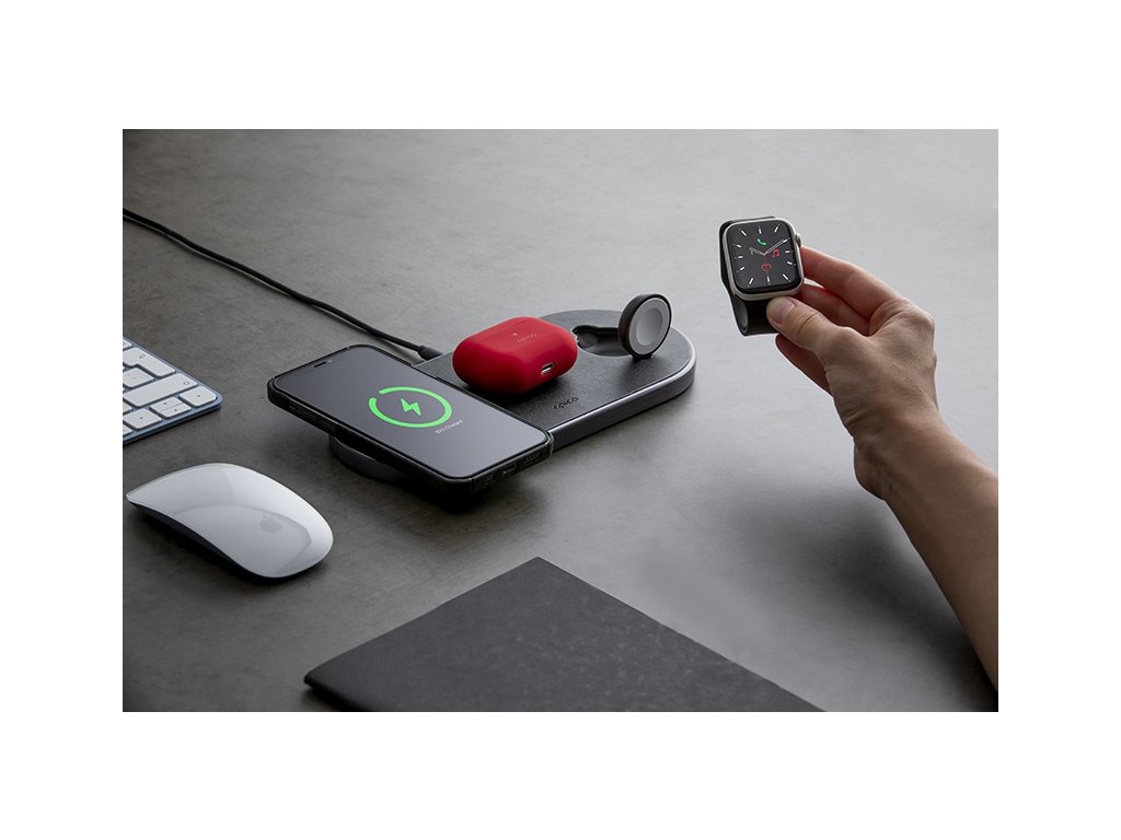 Epico 3in1 Wireless Charging Base je vynikající nabíječka pro nabíjení až tří zařízení současně. Tato všestranná nabíječka podporuje rychlé nabíjení pro chytré telefony výkonem 10 W (7,5 W pro iPhone). Nabíjecí modul pro hodinky Apple Watch s maximálním výkonem 5 W je certifikovaný společností Apple, což zajišťuje 100% kompatibilitu. Prémiová nabíječka vyrobená v kombinaci hliníku a eko-kůže a doplní každý stůl nebo noční stolek. Součástí balení je 30W PD síťová nabíječka a kabel USB-C na USB-C, takže budete mít vše, co potřebujete, hned po vybalení.