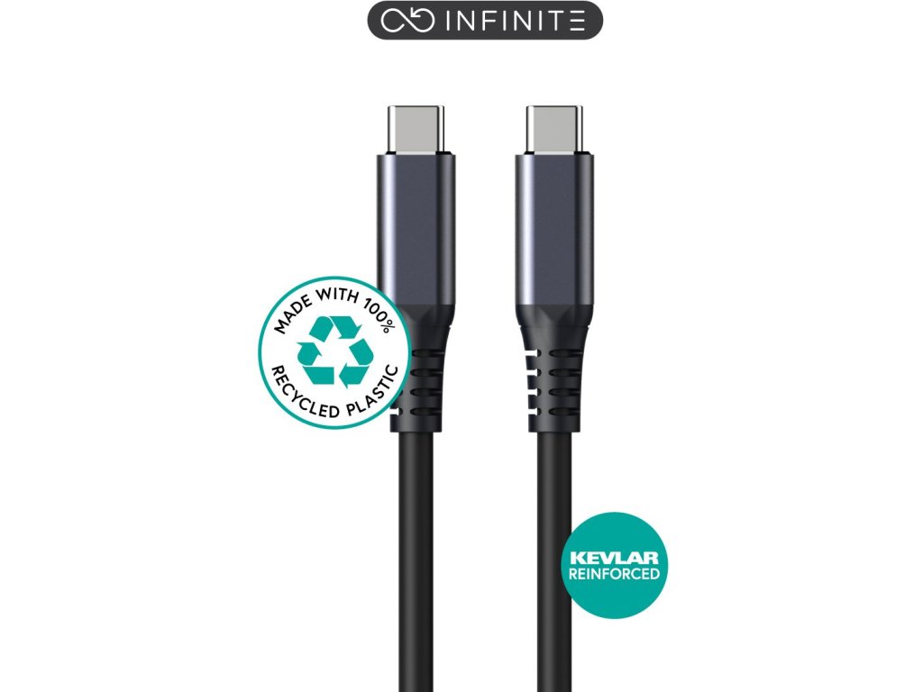 Kabel je určen k použití mezi zařízeními s USB Type-C s podporou USB4, ale mějte na paměti, že ne všechna zařízení s USB-C fungují se všemi funkcemi USB Type-C. Kabel je extrémně odolný. Je vybaven plně laserově svařovanými zesílenými konektory a vydrží více než + 35 000 ohybů o 180°. Přidaný kevlar dává kabelu pevnost v tahu +50 kg.