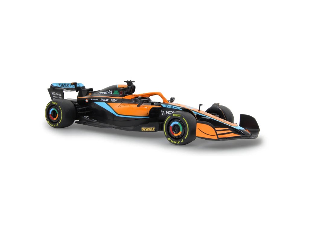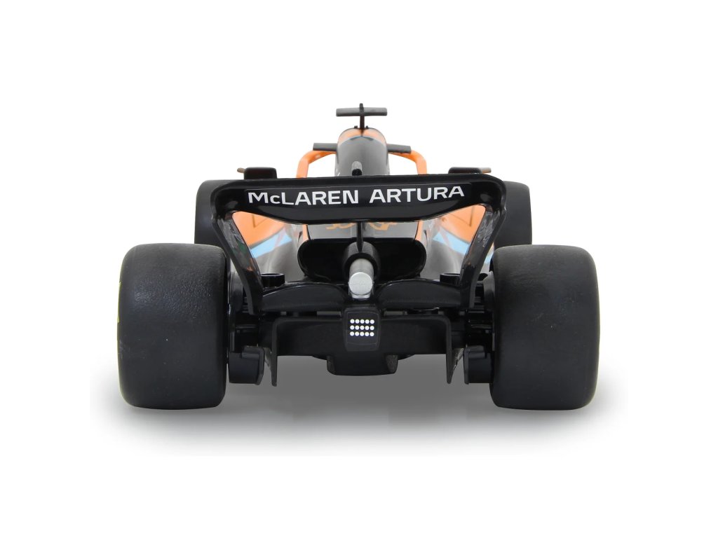 McLaren MCL36 byl poprvé představen na mistrovství světa Formule 1 v roce 2022. Sen o tom řídit takový vůz se nyní může splnit. S tímto oficiálně licencovaným luxusním modelem vozu v měřítku 1:18 od JAMARA si můžete pocit vlastnictví takového závodního vozu přinést do svého obývacího pokoje. S perfektně reprodukovanými originálními detaily na podvozku a karoserii, které byly realizovány s velkou láskou, zaujme vozidlo také svým vysoce kvalitním zpracováním. S ergonomickým dálkovým ovládáním 2,4 GHz držíte ovládací centrum ve své ruce, stejně jako v opravdovém závodním voze, a dosáhnete rychlosti až 10 km/h. Tak se vydejte na závodní kolo na parketové podlaze v dětském pokoji a nic vám nebude bránit v zábavě.