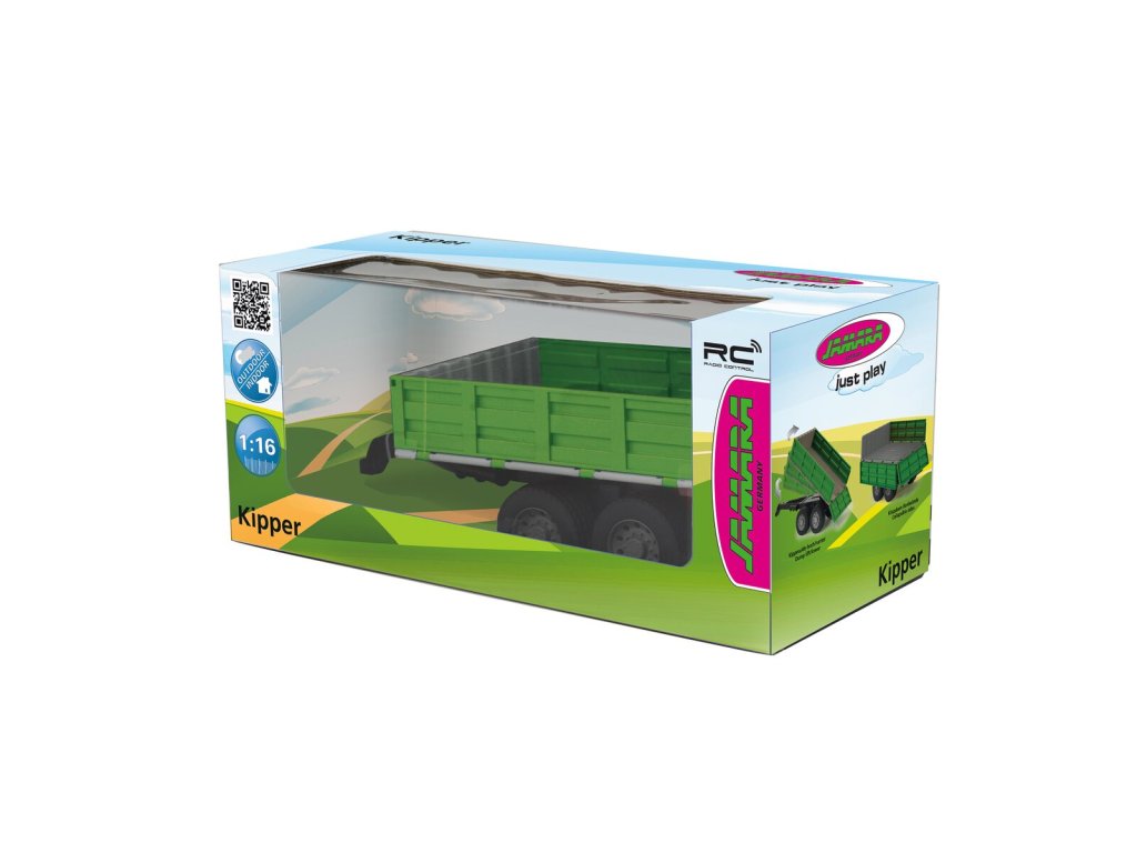 Díky inovativnímu systému RC plug se sklápěč jednoduše připojí k traktoru pomocí zástrčky - a poté se pohodlně ovládá pomocí dálkového ovládání traktoru. Díky tomu lze nakládací plošinu zvedat a spouštět stisknutím tlačítka, stejně jako u skutečného sklápěče. Díky přídavnému tažnému zařízení jej lze také snadno kombinovat s jinými přívěsy. Ručně sklopné bočnice umožňují realistické nakládání a vykládání, zatímco gumové pneumatiky s dezénem zajišťují dobré jízdní vlastnosti na různých površích. Přívěs je vyroben z odolného plastu a je ideální pro každodenní použití v dětském pokoji. Vytváří širokou škálu možností hry s farmářskou tématikou - ideální pro děti od 6 let.
