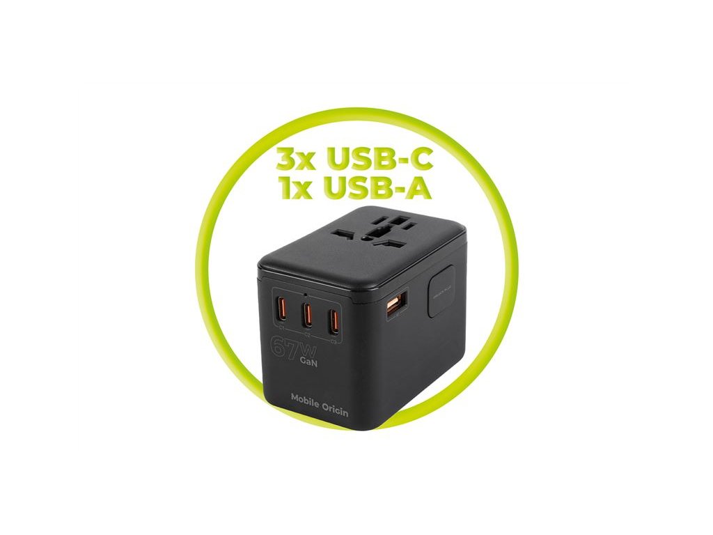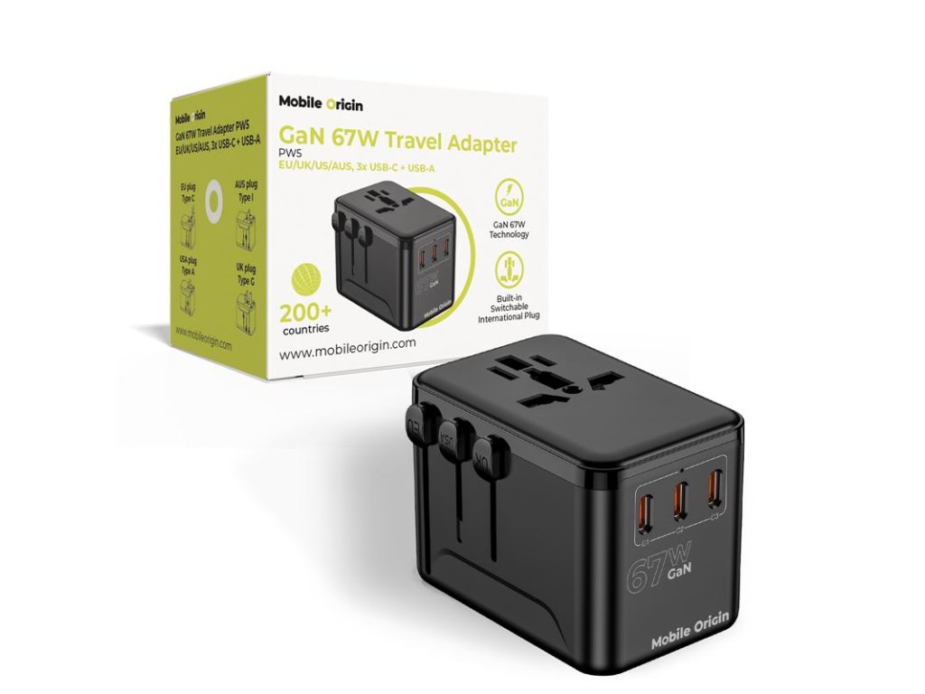 Cestujte bez omezení a udržujte svá zařízení vždy nabitá s Mobile Origin GaN 67W Travel Adapterem.