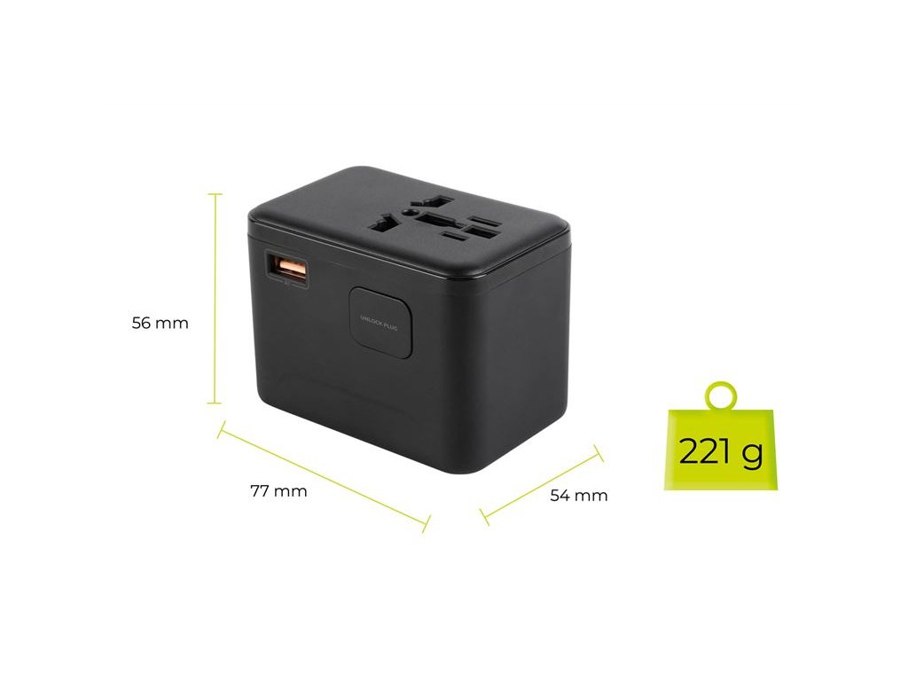 Díky vestavěným mezinárodním zástrčkám je adaptér použitelný ve více než 200 zemích včetně EU, UK, US, AUS.