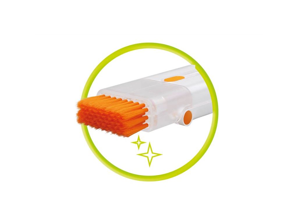 - Efektivní odstraňování: Snadno odstraňuje odolné nečistoty a zbytky kdykoli a kdekoli s pomocí kvalitních kartáčů.