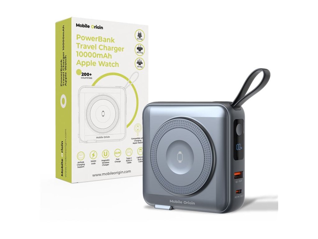 PowerBanka Travel Charger 10000 mAh nabízí univerzální nabíjení telefonu, hodinek i sluchátek díky vestavěným kabelům, podpoře MagSafe a výměnným síťovým adaptérům. Kompaktní cestovní řešení s rychlým nabíjením až 20W je navíc vybaveno praktickou funkcí stojánku pro telefon a přehledným LCD displejem, který ukazuje stav nabíjení. Spolehlivá ochrana zajišťuje bezpečné používání doma i na cestách.3v1 Bezdrátové nabíjení na cesty: USB-C port s podporou Power Delivery poskytuje výkon až 20 W, USB-A až 22.5 W. Bezdrátové nabíjení telefonu dosahuje až 15 W, hodinky se nabijí výkonem 2.5 W.