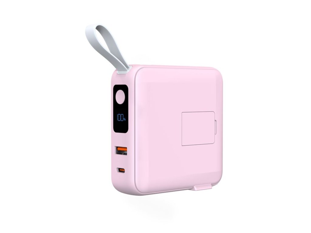 - Snadné nabíjení na cestách: PowerBanka je navržena pro snadné připojení k zásuvce a nabíjení na cestách, s praktickým popruhem pro přenos a kompaktním designem.