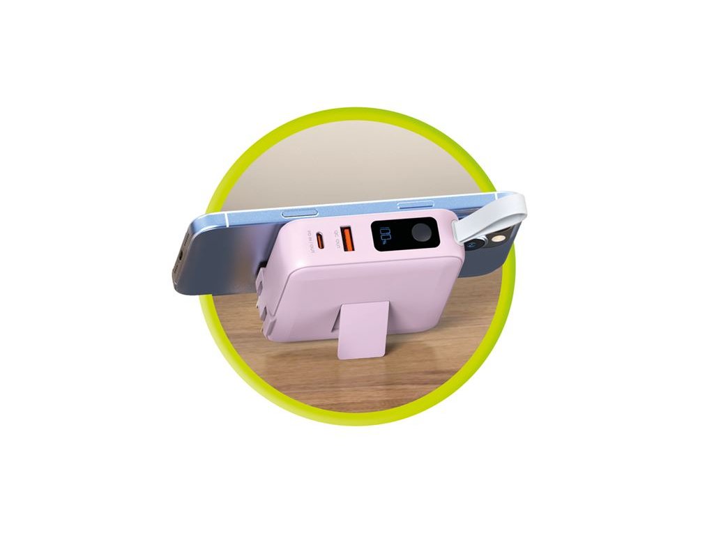 PowerBanka Travel Charger 10000 mAh nabízí univerzální nabíjení telefonu, hodinek i sluchátek díky vestavěným kabelům, podpoře MagSafe a výměnným síťovým adaptérům. Kompaktní cestovní řešení s rychlým nabíjením až 20W je navíc vybaveno praktickou funkcí stojánku pro telefon a přehledným LCD displejem, který ukazuje stav nabíjení. Spolehlivá ochrana zajišťuje bezpečné používání doma i na cestách.3v1 Bezdrátové nabíjení na cesty: USB-C port s podporou Power Delivery poskytuje výkon až 20 W, USB-A až 22.5 W. Bezdrátové nabíjení telefonu dosahuje až 15 W, hodinky se nabijí výkonem 2.5 W.