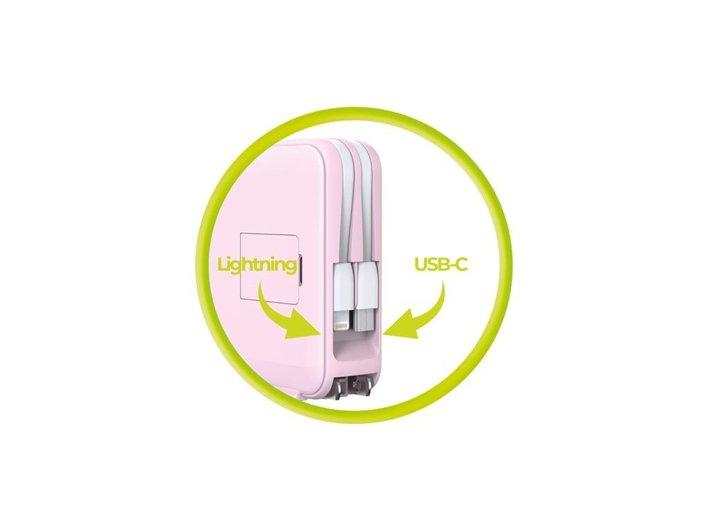 - Vestavěné kabely: Díky integrovanému USB-C a Lightning kabelu budete vždy připraveni nabíjet svá zařízení.