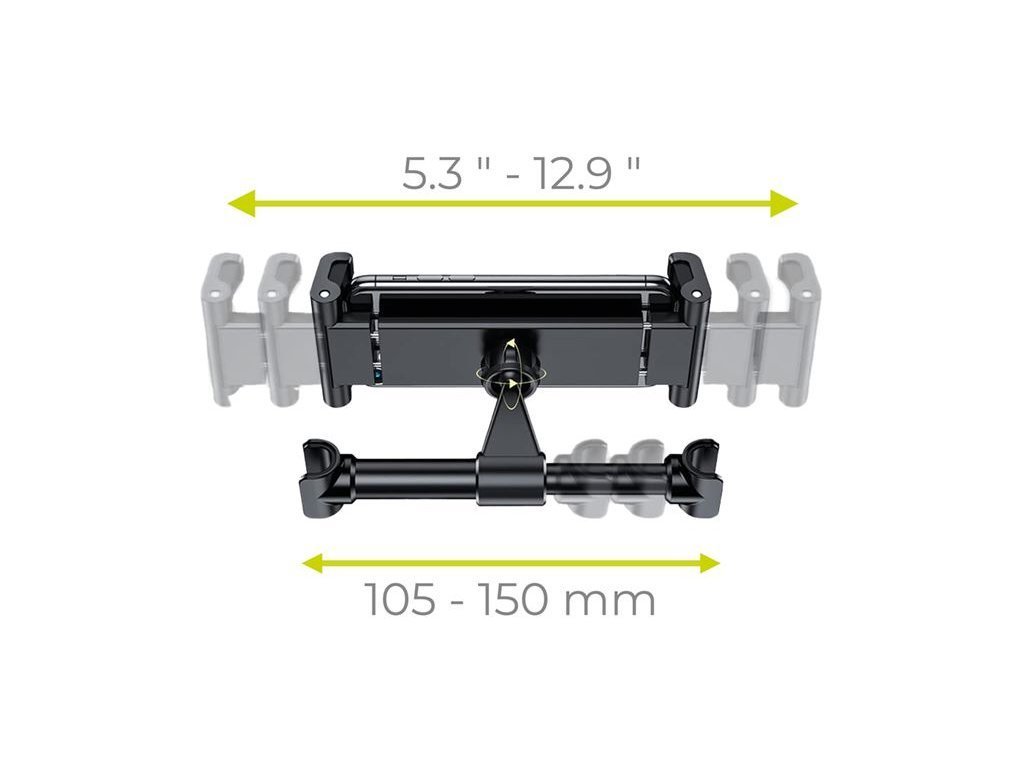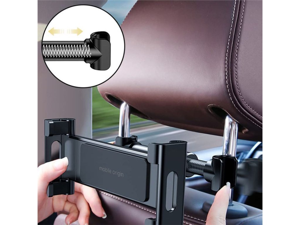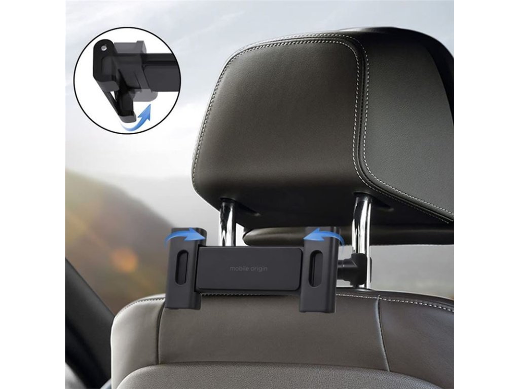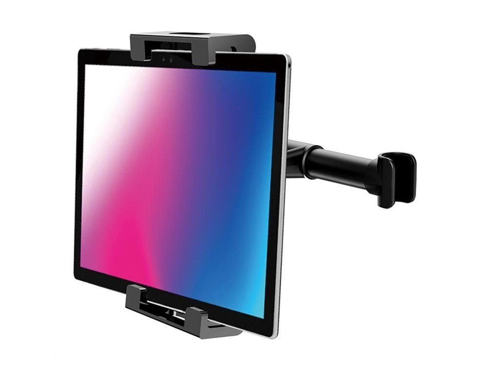 Sledujte filmy na cestách! S tímto držákem tabletu na opěrku hlavy zabavíte vaše pasažéry. Držák na opěrku hlavy snadno a rychle připevníte pomocí pružinového mechanismu.