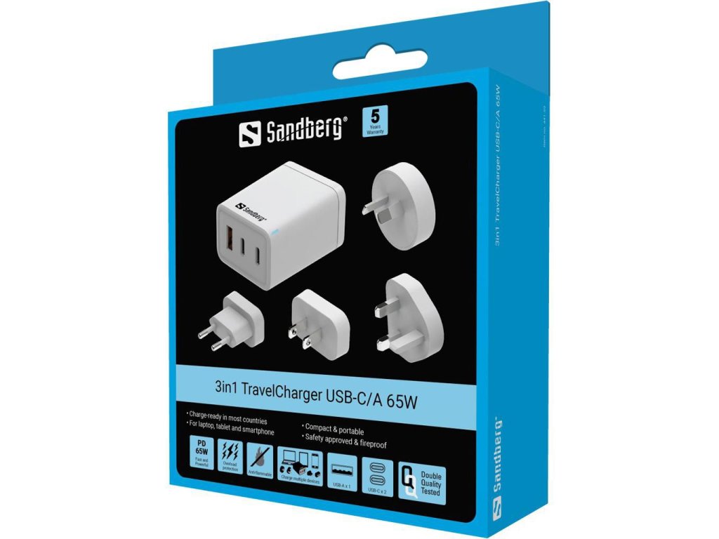 Sandberg 3in1 TravelCharger USB-C/A 65W