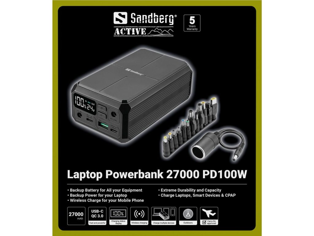 Powerbanka Sandberg Laptop 27000 PD100W je špičková powerbanka s působivou rychlostí, silným výkonem a obrovskou kapacitou 27 000 mAh. S touto powerbankou máte vždy zaručeno rychlé a efektivní nabíjení všech vašich mobilních zařízení - ať jste kdekoli. Podporuje jak stejnosměrný proud s výkonem až 84W, tak běžné USB-A a USB-C PD 27+100W, což znamená, že můžete nabíjet téměř všechny typy mobilních zařízení, včetně notebooků. Chytrý informativní displej vám poskytuje plnou kontrolu nad procesem nabíjení.