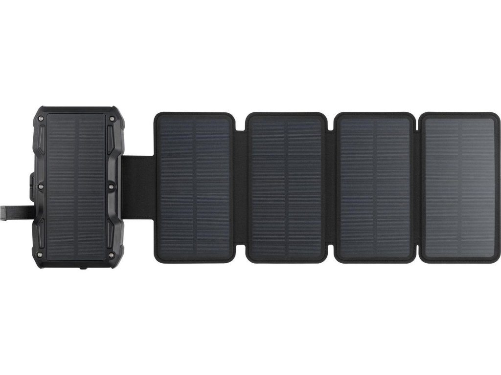 Solar 5-Panel Powerbank 27000 je kombinací výkonné powerbanky s kapacitou 27000 mAh a skládacího solárního panelu, což vám umožní rychle a efektivně dobít powerbanku na slunci. Nabijte ji doma a kdykoli budete mít příležitost, umístěte ji na slunce. Tímto způsobem budete mít vždy energii pro svá mobilní zařízení, bez ohledu na to, jak daleko jste od zásuvky.